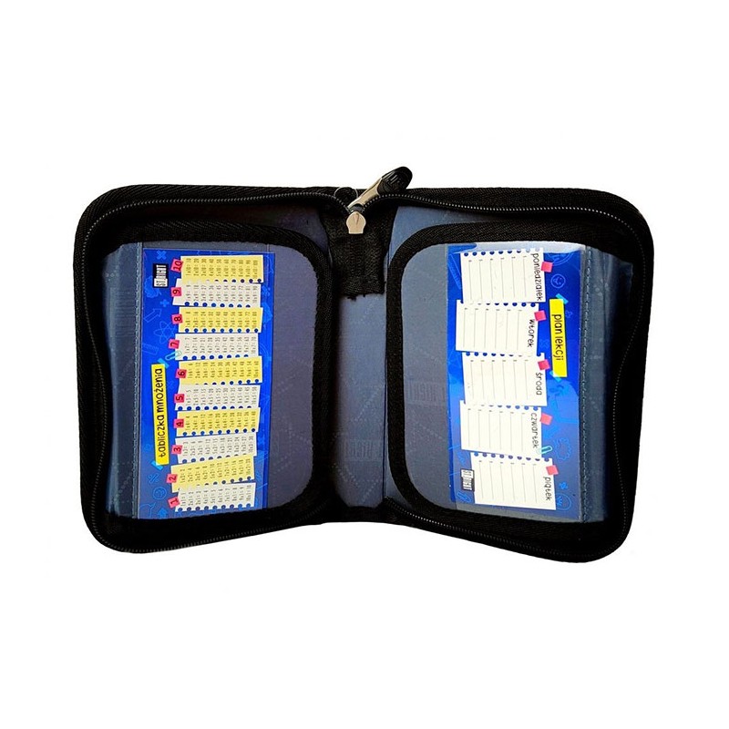 Penar neechipat, prevazut cu 1 fermoar si 2 extensii, Majewski, Colectia Black Cats, un penar compact si spatios. Penarul este realizat dintr-un material textil, de foarte buna calitate, rezistent si impermeabil. Penarul este prevazut cu un compartiment si 2 extensii, si dispune de o capacitate mare de echipare, oferind suficient spatiu pentru diverse rechizite: rigla, ascutitoare, compas, instrumente de scris sau instrumente de colorat. Cele doua extensii ale penarului sunt dotate cu cate un orar, si un cartonas cu tabla inmultirii. Fermoarul penarului este rezistent, dotat cu o zona de prindere cauciucata si profilata, pentru prindere usoara. Dimensiunile penarului sunt urmatoarele: 21x14x3.5 cm.