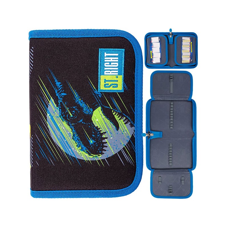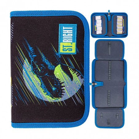 Penar neechipat, prevazut cu 1 fermoar si 2 extensii, Majewski, Gama St. Right, Colectia Coala, un penar compact si spatios. Penarul este realizat dintr-un material textil, de foarte buna calitate, re-zistent si impermeabil. Penarul este prevazut cu un compartiment si 2 extensii, si dispune de o ca-pacitate mare de echipare, oferind suficient spatiu pentru diverse rechizite: rigla, ascutitoare, com-pas, instrumente de scris sau instrumente de colorat. Cele doua extensii ale penarului sunt dotate cu cate un orar, si un cartonas cu tabla inmultirii. Fermoarul penarului este rezistent, dotat cu o zona de prindere cauciucata si profilata, pentru prindere usoara. Dimensiunile penarului sunt urmatoarele: 21x14x3.5 cm.