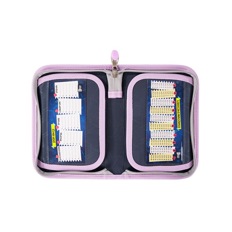 Penar neechipat, prevazut cu 1 fermoar si 2 extensii, Majewski, Gama St. Right, Colectia Pastel Stars, un penar compact si spatios. Penarul este realizat dintr-un material textil, de foarte buna calitate, re-zistent si impermeabil. Penarul este prevazut cu un compartiment si 2 extensii, si dispune de o ca-pacitate mare de echipare, oferind suficient spatiu pentru diverse rechizite: rigla, ascutitoare, com-pas, instrumente de scris sau instrumente de colorat. Cele doua extensii ale penarului sunt dotate cu cate un orar, si un cartonas cu tabla inmultirii. Fermoarul penarului este rezistent, dotat cu o zona de prindere cauciucata si profilata, pentru prindere usoara. Dimensiunile penarului sunt urmatoarele: 21x14x3.5 cm.