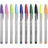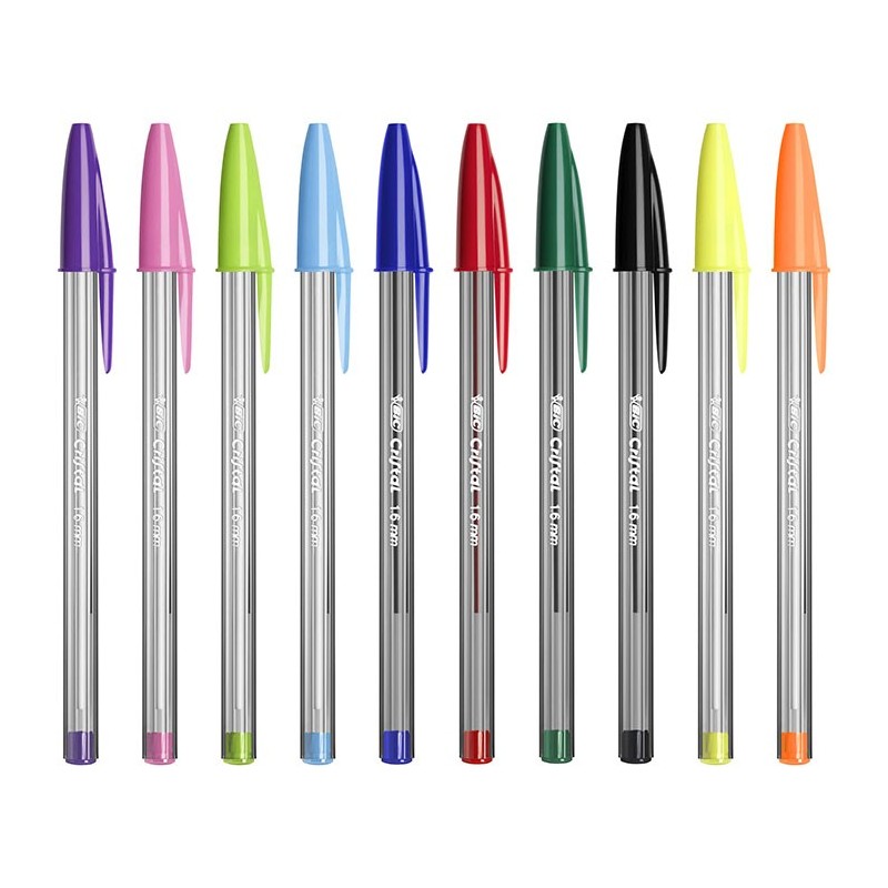 Set pix Bic Cristal Multicolour medium, iti aduce cea mai diversificata gama de cerneluri colorate. Setul contine celebrul pix clasic, ce ofera cea mai buna calitate la pret accesibil, in 15 culori vii, dintre care 2 fluorescente. Pixurile au corpul hexagonal, realizat din material plastic fumuriu. Culoarea fumurie a corpului permite verificarea nivelului de cerneala. Pixurile sunt prevazute cu un capac ventilat cu clip de prindere, in culoarea cernelii. Bila fiecarui pix este realizata din carbura de tungsten, perfect sferica, foarte rezistenta. Grosimea varfului este de 1.6 mm, iar linia de scriere este de 0.42 mm.