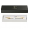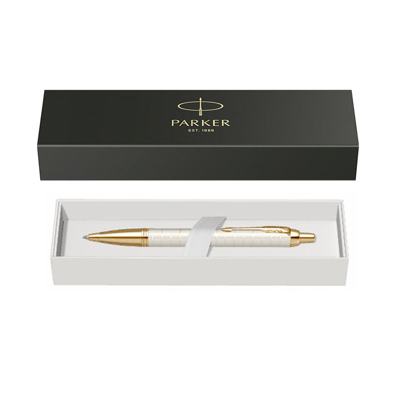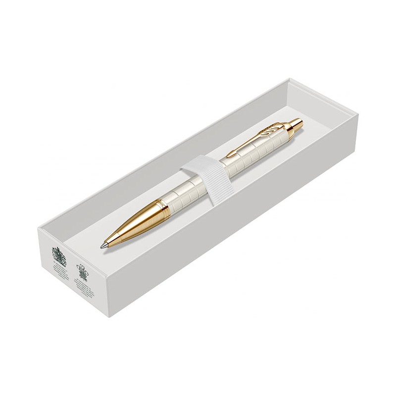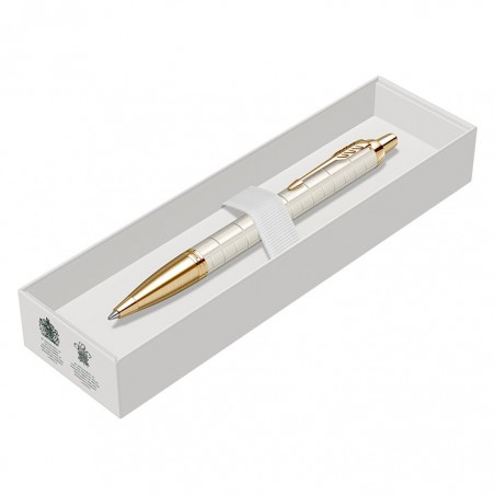 Pix Parker IM Royal Premium alb perlat cu accesorii aurii, un pix ce face parte din gama IM Roy-al. Gama Royal, lansata in anul 2016 pe piata britanica, reprezinta gama clasica refrisata cu ele-mente decorative, finisaje si ambalaje noi. Aceasta gama combina in mod natural functionalitatea cu eleganta, oferind o experienta aparte plina de incredere si de confort la scriere. Forma sa moderna se defineste prin linii clasice drepte, simple, bine conturate, ce incanta ochiul inca de la prima vedere. Fara rezerve, Parker IM Premium se prezinta ca un "scriitor" modern, simplu, fiabil si de calitate. Forma sa moderna, definita de linii clasice drepte si bine conturate, incanta simturile inca de la prima vedere. Fiecare detaliu, de la eleganta lucioasa a finisajelor la rafinamentul textur-ii cizelate pe corp si capac, este conceput pentru a rasfata simturile tactile si vizuale ale utiliza-torului. Pixul are corpul realizat din aluminiu gravat laser cu model cross line, lacuit cu lac alb per-lat. Pixul este prevazut cu un mecanism ce se actioneaza prin click (apasare) si contine o rezerva Parker. Pixul este dotat cu un grip realizat din alama, cizelat cu model brushed, placat cu aur de 23K. Accesoriile pixului sunt realizate din alama, placate cu aur de 23K. Pixul este dotat cu un clips realizat din otel inoxidabil, placat cu aur de 23K. Pixul se livreaza ambalat in cutie de cadou, si reprezinta un cadou ideal pentru orice ocazie. De fapt, IM se afla in topul vanzarilor si al prefer-intelor, fiind declarat pe buna dreptate de foarte multi utilizatori ca fiind "cadoul accesibil care conteaza". Se poate opta si pentru o ambalare premium, intr-un extrem de elegant etui de piele sau o cutie de cadou, pe care le puteti alege din Accesorii pentru cadouri.