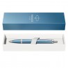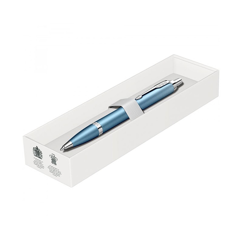 Pix Parker IM Royal Rituals albastru cu accesorii cromate, un pix ce face parte din gama IM Royal Rituals. Intr-o lume care curge in fluxuri rapide si gesturi scurte, colectia Parker IM Royal Rituals propune un act rar: sa incetinesti. Sa-ti asculti gandurile. Sa le transformi in cuvinte, nu in graba, ci in tihna. Aici, scrisul nu mai este doar mijloc de comunicare. Devine ritual. Aceasta colectie nu este despre obiecte luxoase, ci despre stari. Despre cum un instrument de scris bine ales iti poate ancora mintea, clarifica intentiile si da greutate gandurilor. Corpul pixului este realizat din alama, lacuit cu lac albastru mat. Pixul este prevazut cu un mecanism ce se actioneaza prin click (apasare) si contine o rezerva Parker. Pixul este dotat cu un grip din alama lacuit cu lac albastru mat. Ac-cesoriile pixului sunt realizate din alama, placate cu crom. Pixul este dotat cu un clips realizat din otel inoxidabil, placat cu crom. Pixul se livreaza ambalat in cutie de cadou, si reprezinta un cadou ideal pentru orice ocazie. Se poate opta si pentru o ambalare premium, intr-un extrem de elegant etui de piele sau o cutie de cadou, pe care le puteti alege din Accesorii pentru cadouri.