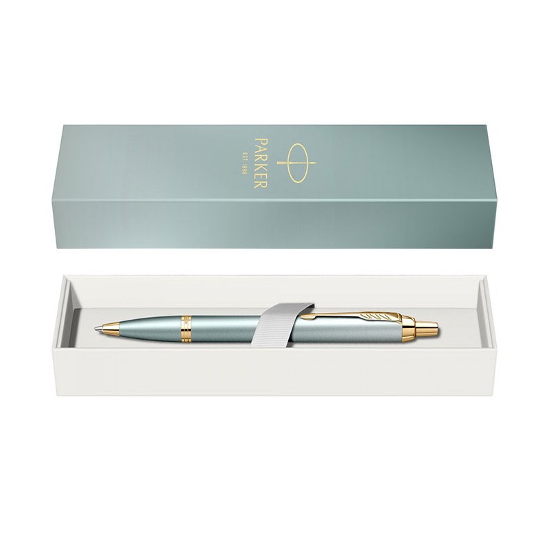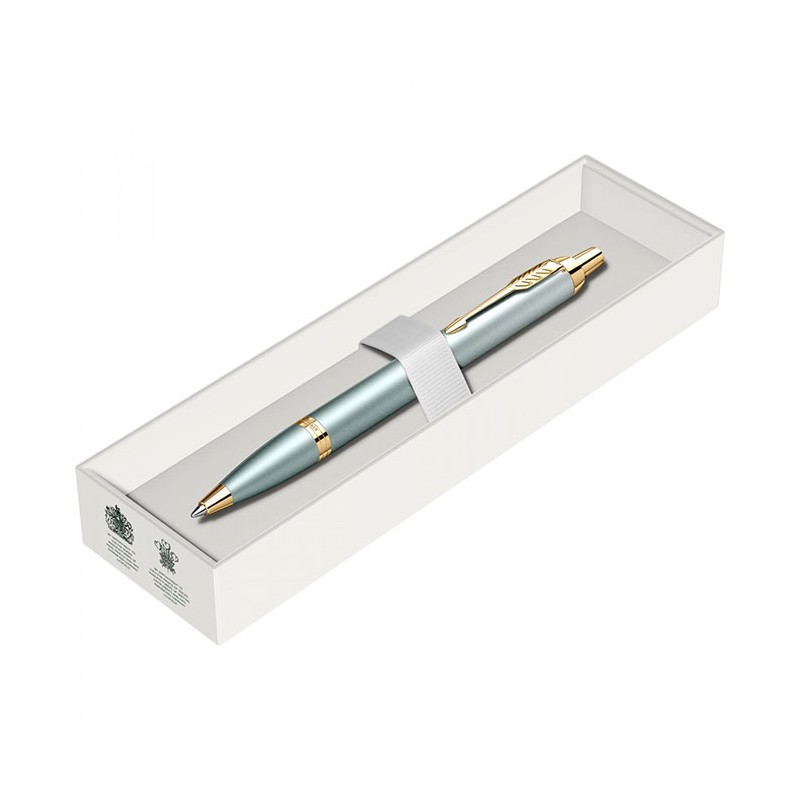 Pix Parker IM Royal Rituals verde turcoaz cu accesorii aurii, un pix ce face parte din gama IM Royal Rituals. Intr-o lume care curge in fluxuri rapide si gesturi scurte, colectia Parker IM Royal Rituals propune un act rar: sa incetinesti. Sa-ti asculti gandurile. Sa le transformi in cuvinte, nu in graba, ci in tihna. Aici, scrisul nu mai este doar mijloc de comunicare. Devine ritual. Aceasta co-lectie nu este despre obiecte luxoase, ci despre stari. Despre cum un instrument de scris bine ales iti poate ancora mintea, clarifica intentiile si da greutate gandurilor. Corpul pixului este realizat din alama, lacuit cu lac verde turcoaz mat. Pixul este prevazut cu un mecanism ce se actioneaza prin click (apasare) si contine o rezerva Parker. Pixul este dotat cu un grip din alama lacuit cu lac verde turcoaz mat. Accesoriile pixului sunt realizate din alama, placate cu aur de 23K. Pixul este dotat cu un clips realizat din otel inoxidabil, placat cu aur de 23K. Pixul se livreaza ambalat in cutie de ca-dou, si reprezinta un cadou ideal pentru orice ocazie. Se poate opta si pentru o ambalare premium, intr-un extrem de elegant etui de piele sau o cutie de cadou, pe care le puteti alege din Accesorii pentru cadouri.