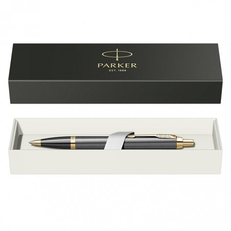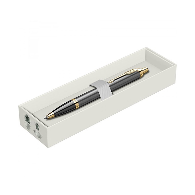 Pix Parker IM Royal gri cu accesorii aurii, un pix ce face parte din gama IM Royal. Gama Royal, lansata in anul 2016 pe piata britanica, reprezinta gama clasica refrisata cu elemente decorative, finisaje si ambalaje noi. Aceasta gama combina in mod natural functionalitatea cu eleganta, oferind o experienta aparte plina de incredere si de confort la scriere. Forma sa moderna se de-fineste prin linii clasice drepte, simple, bine conturate, ce incanta ochiul inca de la prima vedere. Corpul pixului este realizat din otel inoxidabil, lacuit cu lac gri lucios. Pixul este prevazut cu un mecanism ce se actioneaza prin click (apasare) si contine o rezerva Parker. Pixul este dotat cu un grip din ABS, de culoare neagra. Accesoriile pixului sunt realizate din alama, placate cu aur de 23K. Pixul este dotat cu un clips realizat din otel inoxidabil, placat cu aur de 23K. Pixul se livreaza ambalat in cutie de cadou, si reprezinta un cadou ideal pentru orice ocazie. Se poate opta si pentru o ambalare premium, intr-un extrem de elegant etui de piele sau o cutie de cadou, pe care le puteti alege din Accesorii pentru cadouri.