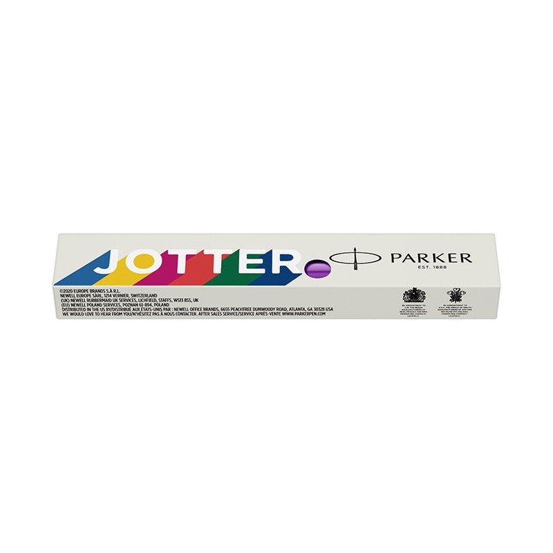 Pix Parker Jotter Original Royal Ametist, violet cu accesorii cromate, un pix ce face parte din gama Jotter Original. Gama Jotter a reusit de-a lungul timpului sa stranga in palmares cateva recorduri de invidiat. Este unul dintre cele mai longevive produse de la Parker si in acelasi timp cel mai vandut produs din istoria Parker. Este de asemenea primul pix din lume care foloseste pentru prima oara mina jumbo (inventie patentata 100% Parker) care mai tarziu a fost preluata de catre majoritatea caselor producatoare de instrumente de scris sub numele de mina tip Parker. Este considerat unul dintre cele mai ergonomice pixuri din lume, imbinand intr-o armonie perfecta raportul dimensiuni-forma-greutatea, dublate de o fiabilitate de exceptie a mecanismului. Pentru toate acestea este in topul preferintelor consumatorilor, fiind extrem de indragit si apreciat de catre utilizatori. Jotter reprezinta fara niciun dubiu un "click de scris si semnat" inconfundabil in patrimoniul Parker. Pixul are corpul superior realizat din otel inoxidabil sablat, placat cu crom, iar corpul inferior este realizat din ABS (acrylonitrile butadiene styrene) de culoare violet. Accesoriile sunt realizate din otel inoxidabil placate cu crom. Clipul pixului este din otel inoxidabil placat cu crom. Pixul este prevazut cu un mecanism ce functioneaza prin click (prin apasare). Pixul contine o mina Parker. Pixul se livreaza ambalat in cutie de cadou. Modelul cutiei de ambalare este cu titlu informativ. Acesta poate varia de la un lot de fabricatie la altul. Se poate opta si pentru o ambalare premium, intr-un etui de piele elegant sau o cutie de cadou premium, pe care le puteti alege din Accesorii pentru cadouri. Nu ezitati sa faceti din Jotter un cadou practic si apreciat prietenilor sau celor apropiati. De asemenea nu ezitati sa va faceti pentru dumneavoastra din Jotter, un prieten care sa va inspire si sa va insoteasca neconditionat zi de zi in ale scrisului.