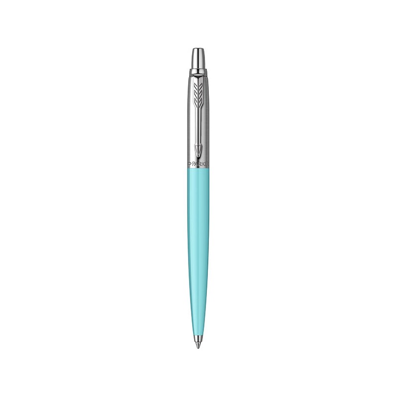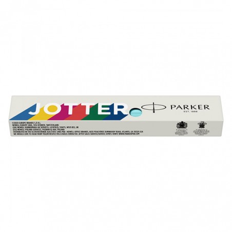 Pix Parker Jotter Original Royal Glam Rock Azure Blue, albastru deschis cu accesorii cromate, un pix ce face parte din gama Jotter Original. Gama Jotter a reusit de-a lungul timpului sa stranga in palmares cateva recorduri de invidiat. Este unul dintre cele mai longevive produse de la Parker si in acelasi timp cel mai vandut produs din istoria Parker. Este de asemenea primul pix din lume care foloseste pentru prima oara mina jumbo (inventie patentata 100% Parker) care mai tarziu a fost preluata de catre majoritatea caselor producatoare de instrumente de scris sub numele de mina tip Parker. Este considerat unul dintre cele mai ergonomice pixuri din lume, imbinand intr-o armonie perfecta raportul dimensiuni-forma-greutatea, dublate de o fiabilitate de exceptie a mecanismului. Pentru toate acestea este in topul preferintelor consumatorilor, fiind extrem de indragit si apreciat de catre utilizatori. Jotter reprezinta fara niciun dubiu un "click de scris si semnat" inconfundabil in patrimoniul Parker. Pixul are corpul superior realizat din otel inoxidabil sablat, placat cu crom, iar corpul inferior este realizat din ABS (acrylonitrile butadiene styrene) de culoare albastru deschis. Accesoriile sunt realizate din otel inoxidabil placate cu crom. Clipul pixului este din otel inoxidabil placat cu crom. Pixul este prevazut cu un mecanism ce functioneaza prin click (prin apasare). Pixul contine o mina Parker. Pixul se livreaza ambalat in cutie de cadou. Modelul cutiei de ambalare este cu titlu informativ. Acesta poate varia de la un lot de fabricatie la altul. Se poate opta si pentru o ambalare premium, intr-un etui de piele elegant sau o cutie de cadou premium, pe care le puteti alege din Accesorii pentru cadouri. Nu ezitati sa faceti din Jotter un cadou practic si apreciat prietenilor sau celor apropiati. De asemenea nu ezitati sa va faceti pentru dumneavoastra din Jotter, un prieten care sa va inspire si sa va insoteasca neconditionat zi de zi in ale scrisului.