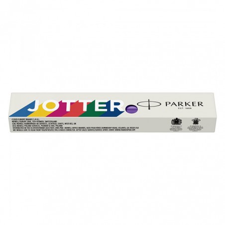 Pix Parker Jotter Original Royal Pop Frosty Purple, violet cu accesorii cromate, un pix ce face parte din gama Jotter Original. Gama Jotter a reusit de-a lungul timpului sa stranga in palmares cateva recorduri de invidiat. Este unul dintre cele mai longevive produse de la Parker si in acelasi timp cel mai vandut produs din istoria Parker. Este de asemenea primul pix din lume care foloseste pentru prima oara mina jumbo (inventie patentata 100% Parker) care mai tarziu a fost preluata de catre majoritatea caselor producatoare de instrumente de scris sub numele de mina tip Parker. Este considerat unul dintre cele mai ergonomice pixuri din lume, imbinand intr-o armonie perfecta raportul dimensiuni-forma-greutatea, dublate de o fiabilitate de exceptie a mecanismului. Pentru toate acestea este in topul preferintelor consumatorilor, fiind extrem de indragit si apreciat de catre utilizatori. Jotter reprezinta fara niciun dubiu un "click de scris si semnat" inconfundabil in patrimoniul Parker. Pixul are corpul superior realizat din otel inoxidabil sablat, placat cu crom, iar corpul inferior este realizat din ABS (acrylonitrile butadiene styrene) de culoare violet. Accesoriile sunt realizate din otel inoxidabil placate cu crom. Clipul pixului este din otel inoxidabil placat cu crom. Pixul este prevazut cu un mecanism ce functioneaza prin click (prin apasare). Pixul contine o mina Parker. Pixul se livreaza ambalat in cutie de cadou. Modelul cutiei de ambalare este cu titlu informativ. Acesta poate varia de la un lot de fabricatie la altul. Se poate opta si pentru o ambalare premium, intr-un etui de piele elegant sau o cutie de cadou premium, pe care le puteti alege din Accesorii pentru cadouri. Nu ezitati sa faceti din Jotter un cadou practic si apreciat prietenilor sau celor apropiati. De asemenea nu ezitati sa va faceti pentru dumneavoastra din Jotter, un prieten care sa va inspire si sa va insoteasca neconditionat zi de zi in ale scrisului.