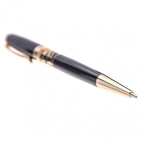 Pixul metalic Daco PX173N, in cutie cadou, un pix intr-un design deosebit de elegant, prevazut cu imprimeu folcloric Dragonul Dacic. Corpul pixului este realizat din metal de culoare neagra, iar accesoriile au culoarea aurie. Pixul este dotat cu un mecanism ce se actioneaza prin rasucire. Pixul este prevazut cu o pasta tip Parker, de culoare albastra. Grosimea liniei de scriere este de 0.7 mm. Elegant si practic, acest pix vine ambalat in propriul etui sub forma de cutie metalica, pe care il poti folosi ca si penar, pentru o mai buna depozitare. Fie ca esti elev, profesor sau lucrezi in mediul business, setul acesta se potriveste oricui, datorita simplitatii si elegantei pe care le imbina! Mai mult, acest pix deosebit poate reprezenta un cadou perfect, pentru orice ocazie.