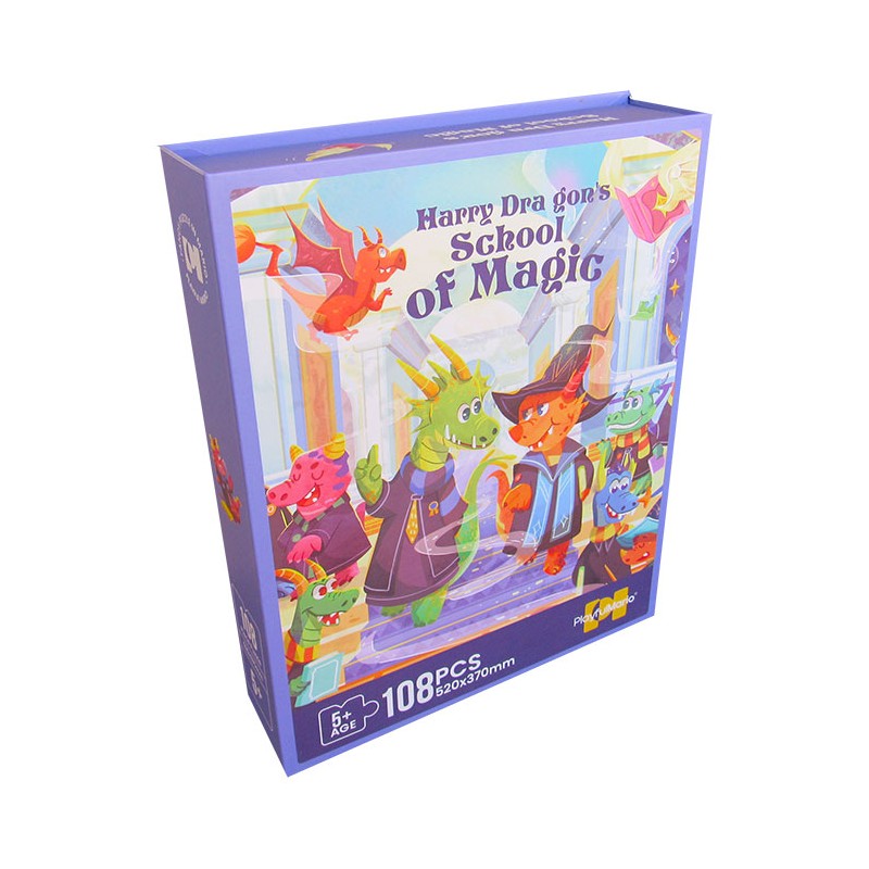 Orice copil care iubeste puzzle-urile va fi incantat sa asambleze acest puzzle deosebit cu 108 piese, care ilustreaza o scena interesanta, cu dragoni si creaturi magice. Puzzle-ul are dimensiunea finala de 520x370 mm. Descoperind combinatiile corecte dintre piesele de puzzle, copiii vor reusi sa isi insuseasca o serie de cunostinte de baza, necesare varstei lor. Ilustratiile prietenoase si culorile vibrante capteaza interesul si atentia copiilor, stimuleaza abilitatile lor de identificare, asociere si asamblare, si dezvolta gandirea logica, imaginatia si creativitatea. Contine piese mici detasabile. Produsul nu este recomandat copiilor sub 3 ani. Datorita modului interesant de ambalare in cutie cu magnet, si a calitatii deosebite a puzzle-ului, acest produs poate reprezenta un cadou deosebit pentru orice ocazie.