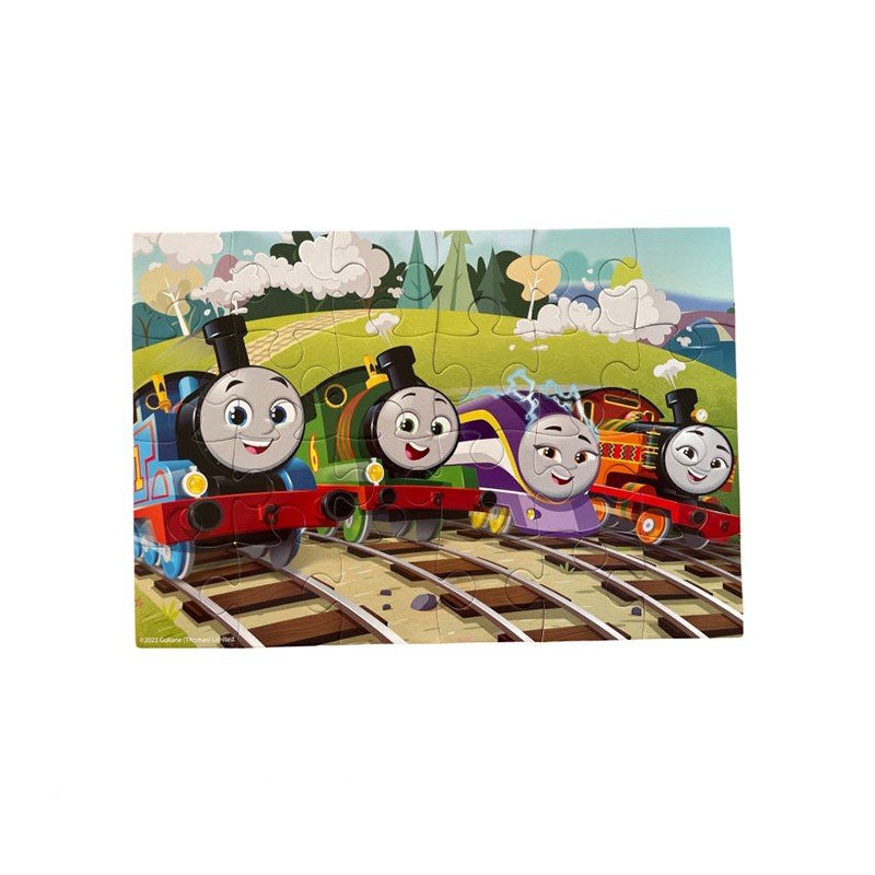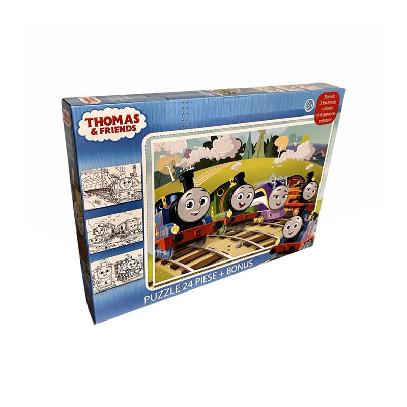 Puzzle 24 de piese Thomas + bonus: 3 foi de colorat + 4 creioane colorate