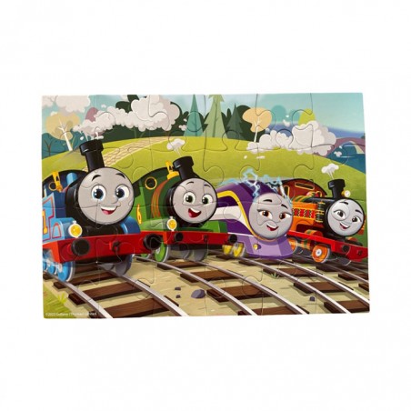 Orice copil care iubeste desenele animate Thomas, va fi incantat sa asambleze acest puzzle deosebit cu 24 piese. Puzzle-ul are dimensiunea finala de 32x22 cm. Descoperind combinatiile corecte dintre piesele de puzzle, copiii vor reusi sa isi insuseasca o serie de cunostinte de baza, necesare varstei lor. Ilustratiile prietenoase capteaza interesul si atentia copiilor, stimuleaza abilitatile lor de identificare, asociere si asamblare, si dezvolta gandirea logica, imaginatia si creativitatea. In plus, la achizitia acestui puzzle, veti primi bonus: 3 foi de colorat A4 si 4 creioane colorate: rosu, galben, verde si albastru. Contine piese mici detasabile. Nerecomandat copiilor sub 3 ani. Dimensiunile cutiei sunt urmatoarele: 32x23x3.8 cm.