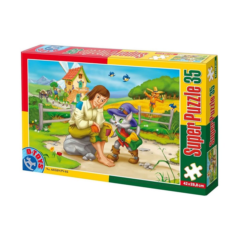 Orice copil care iubeste povestile, va fi incantat sa asambleze acest puzzle deosebit cu 35 piese, care ilustreaza o scena din basme. Puzzle-ul are dimensiunea finala de 42x28,8 cm, si este disponibil in mai multe modele. Descoperind combinatiile corecte dintre piesele de puzzle, copiii vor reusi sa isi insuseasca o serie de cunostinte de baza, necesare varstei lor. Ilustratiile prietenoase capteaza interesul si atentia copiilor, stimuleaza abilitatile lor de identificare, asociere si asamblare, si dezvolta gandirea logica, imaginatia si creativitatea. Produsul este avizat de Laboratorul de Incercari pentru Securitatea Jucariilor Casstil S.A. Contine piese mici detasabile. Nerecomandat copiilor sub 3 ani.
