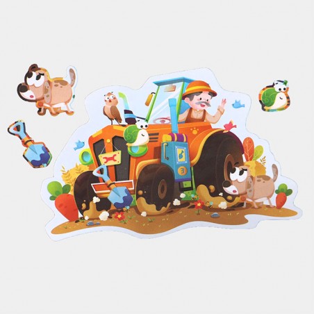 Orice copil care iubeste puzzle-urile va fi incantat sa asambleze acest puzzle deosebit cu 57 piese, care ilustreaza o scena cu masina unui fermier. Puzzle-ul are dimensiunea finala de 548x360 mm. Descoperind combinatiile corecte dintre piesele de puzzle, copiii vor reusi sa isi insuseasca o serie de cunostinte de baza, necesare varstei lor. Ilustratiile prietenoase si culorile vibrante capteaza in-teresul si atentia copiilor, stimuleaza abilitatile lor de identificare, asociere si asamblare, si dezvol-ta gandirea logica, imaginatia si creativitatea. Contine piese mici detasabile. Produsul nu este recomandat copiilor sub 3 ani.