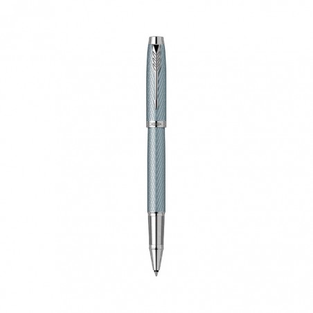 Roller Parker IM Royal Premium albastru deschis cu accesorii cromate, un roller ce face parte din gama IM Royal Premium. Gama Royal, lansata in anul 2016 pe piata britanica, reprezinta gama clasica refrisata cu elemente decorative, finisaje si ambalaje noi. Aceasta gama combina in mod natural functionalitatea cu eleganta, oferind o experienta aparte plina de incredere si de confort la scriere. Forma sa moderna se defineste prin linii clasice drepte, simple, bine conturate, ce incanta ochiul inca de la prima vedere. Fara rezerve, Parker IM Premium se prezinta ca un "scriitor" mod-ern, simplu, fiabil si de calitate. Forma sa moderna, definita de linii clasice drepte si bine conturate, incanta simturile inca de la prima vedere. Fiecare detaliu, de la eleganta lucioasa a fin-isajelor la rafinamentul texturii cizelate pe corp si capac, este conceput pentru a rasfata simturile tactile si vizuale ale utilizatorului. Rollerul are corpul realizat din aluminiu gravat laser cu model chevron large, lacuit cu lac albastru mat. Rollerul functioneaza cu rezerva standard pentru roller cu cerneala si contine o rezerva pentru roller Parker. Rollerul este prevazut cu un grip realizat din alama cizelat cu model brushed, placat cu crom. Capacul rollerului este realizat din aluminiu gra-vat laser cu model chevron large, lacuit cu lac albastru mat. Capacul se inchide prin apasare. Ac-cesoriile rollerului sunt realizate din alama placate cu crom. Rollerul este dotat cu un clips din otel inoxidabil, placat cu crom. Rollerul se livreaza ambalat in cutie de cadou, si poate reprezenta un cadou ideal pentru orice ocazie.