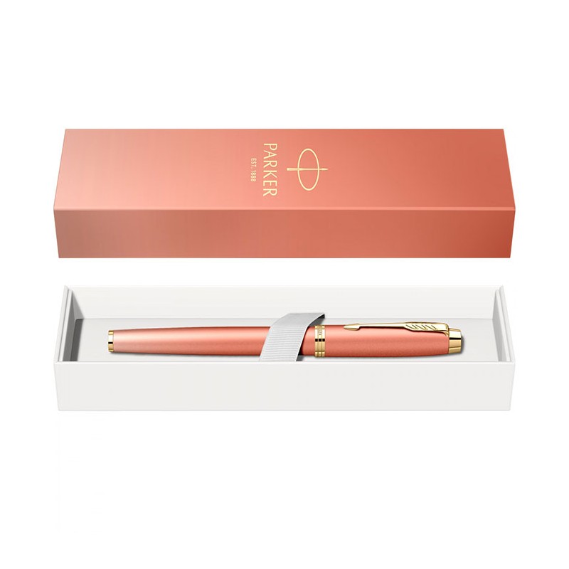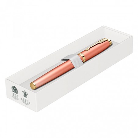 Roller Parker IM Royal Rituals portocaliu mat cu accesorii aurii, un roller ce face parte din gama IM Royal Rituals. Intr-o lume care curge in fluxuri rapide si gesturi scurte, colectia Parker IM Royal Rituals propune un act rar: sa incetinesti. Sa-ti asculti gandurile. Sa le transformi in cuvinte, nu in graba, ci in tihna. Aici, scrisul nu mai este doar mijloc de comunicare. Devine ritual. Aceasta colectie nu este despre obiecte luxoase, ci despre stari. Despre cum un instrument de scris bine ales iti poate ancora mintea, clarifica intentiile si da greutate gandurilor. Rollerul are corpul realizat din alama, lacuit cu lac portocaliu mat. Rollerul functioneaza cu rezerva standard pentru roller cu cer-neala si contine o rezerva pentru roller Parker. Rollerul este prevazut cu un grip din alama lacuit cu lac portocaliu mat. Capacul rollerului este realizat din alama, lacuit cu lac portocaliu mat. Capacul se inchide prin apasare. Accesoriile rollerului sunt realizate din alama, placate cu aur de 23K. Rollerul este dotat cu un clips din otel inoxidabil, placat cu aur de 23K. Rollerul se livreaza amba-lat in cutie de cadou, si poate reprezenta un cadou ideal pentru orice ocazie.