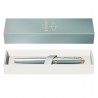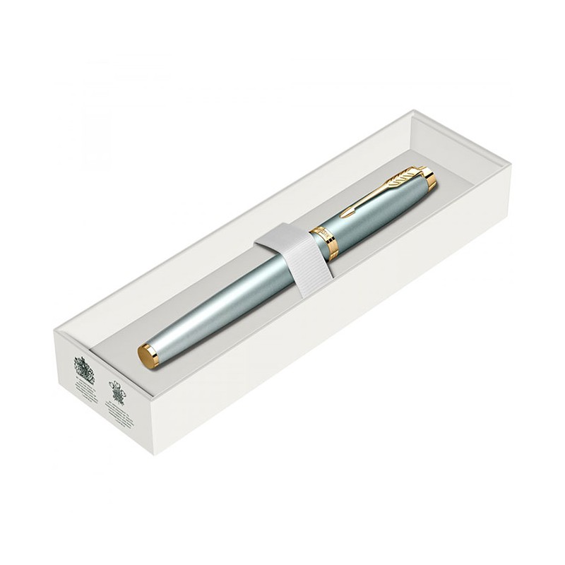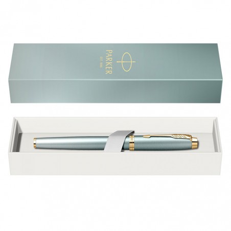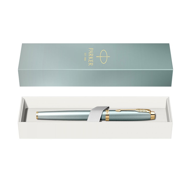 Roller Parker IM Royal Rituals turcoaz mat cu accesorii aurii, un roller ce face parte din gama IM Royal Rituals. Intr-o lume care curge in fluxuri rapide si gesturi scurte, colectia Parker IM Royal Rituals propune un act rar: sa incetinesti. Sa-ti asculti gandurile. Sa le transformi in cuvinte, nu in graba, ci in tihna. Aici, scrisul nu mai este doar mijloc de comunicare. Devine ritual. Aceasta co-lectie nu este despre obiecte luxoase, ci despre stari. Despre cum un instrument de scris bine ales iti poate ancora mintea, clarifica intentiile si da greutate gandurilor. Rollerul are corpul realizat din alama, lacuit cu lac turcoaz mat. Rollerul functioneaza cu rezerva standard pentru roller cu cerne-ala si contine o rezerva pentru roller Parker. Rollerul este prevazut cu un grip din alama lacuit cu lac turcoaz mat. Capacul rollerului este realizat din alama, lacuit cu lac turcoaz mat. Capacul se inchide prin apasare. Accesoriile rollerului sunt realizate din alama, placate cu aur de 23K. Rollerul este dotat cu un clips din otel inoxidabil, placat cu aur de 23K. Rollerul se livreaza amba-lat in cutie de cadou, si poate reprezenta un cadou ideal pentru orice ocazie.