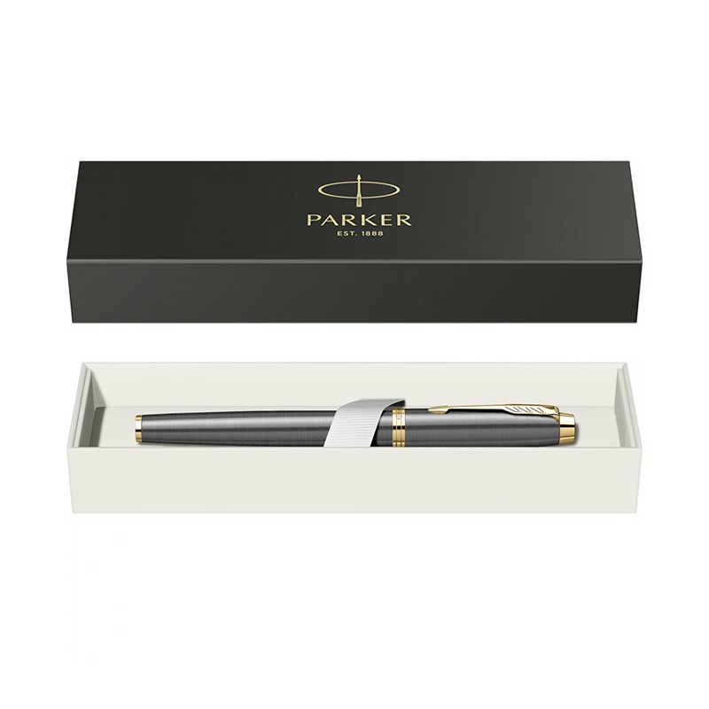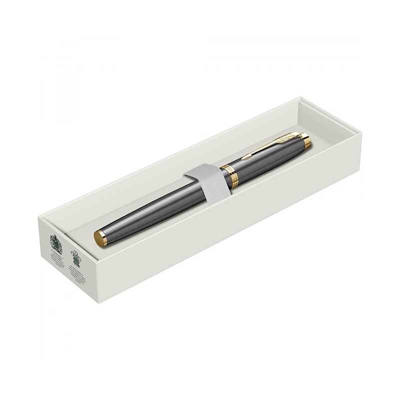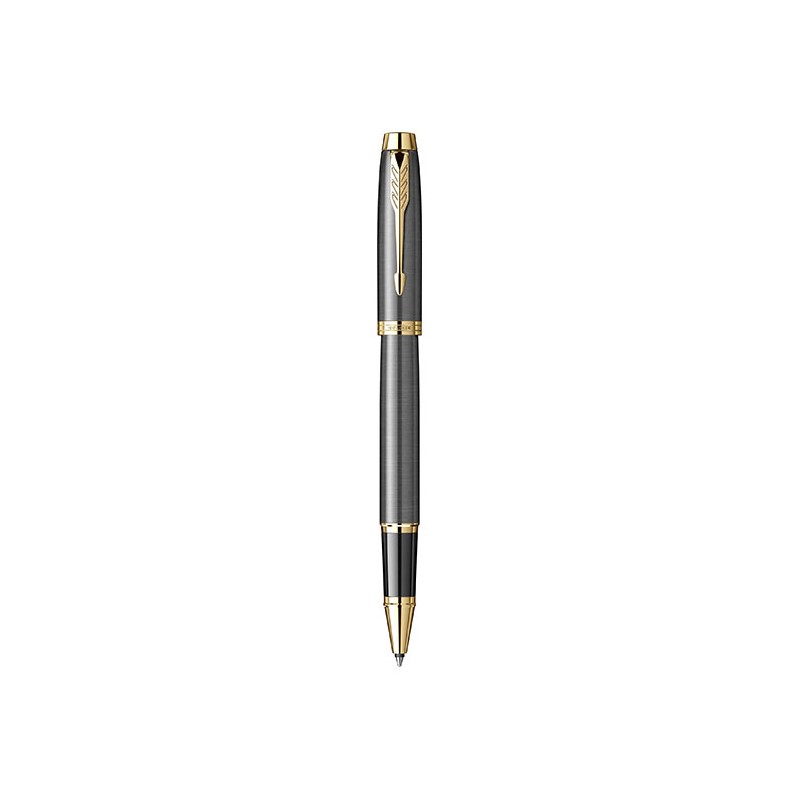 Roller Parker IM Royal gri cu accesorii aurii, un roller ce face parte din gama IM Royal. Gama Royal, lansata in anul 2016 pe piata britanica, reprezinta gama clasica refrisata cu elemente deco-rative, finisaje si ambalaje noi. Aceasta gama combina in mod natural functionalitatea cu eleganta, oferind o experienta aparte plina de incredere si de confort la scriere. Forma sa moderna se de-fineste prin linii clasice drepte, simple, bine conturate, ce incanta ochiul inca de la prima vedere. Rollerul are corpul realizat din otel inoxidabil lacuit cu lac gri lucios. Rollerul functioneaza cu rezerva standard pentru roller cu cerneala si contine o rezerva pentru roller Parker. Rollerul este prevazut cu un grip realizat din plastic ABS, de culoare negru lucios. Capacul rollerului este reali-zat din otel inoxidabil, lacuit cu lac gri lucios. Capacul se inchide prin apasare. Accesoriile rollerului sunt realizate din alama, placate cu aur de 23K. Rollerul este dotat cu un clips din otel inoxidabil, placat cu aur de 23K. Rollerul se livreaza ambalat in cutie de cadou, si poate reprezenta un cadou ideal pentru orice ocazie.