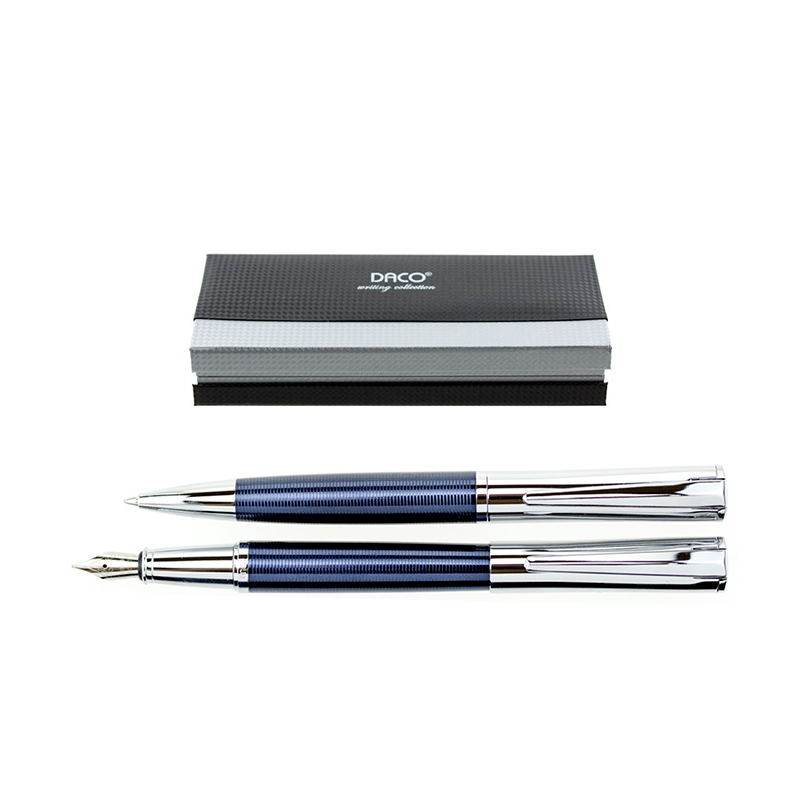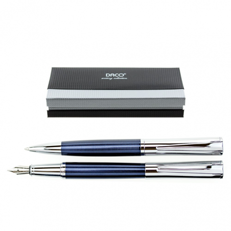 Set alcatuit din pix si stilou metalic de culoare albastra, intr-un design simplu si modern, deosebit de elegant. Instrumentele de scris au corpul metalic de culoare albastra cu accesorii argintii. Pixul se actioneaza prin rasucire si contine o rezerva tip Parker cu grosimea varfului de scris de 1 mm. Stiloul functioneaza cu patroane standard de cerneala. Penita stiloului este deosebit de rezistenta, realizata din iridium, de grosime F. Instrumentele de scris se livreaza ambalate intr-un etui elegant de culoare neagra cu accente gri. Fie ca esti elev, student, profesor sau lucrezi in mediul business, setul acesta se potriveste oricui, datorita simplitatii si elegantei pe care le imbina! In plus, setul de pix si stilou poate deveni un cadou deosebit pentru orice ocazie.