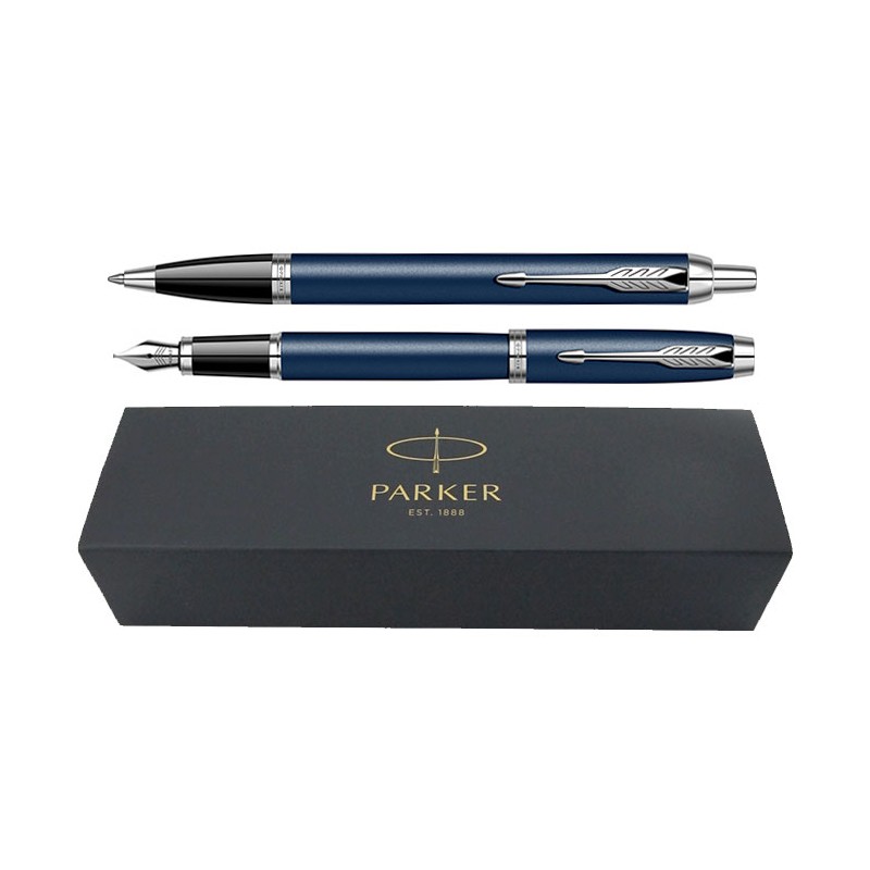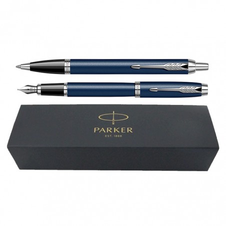 Set pix+stilou Parker IM Royal albastru mat cu accesorii cromate