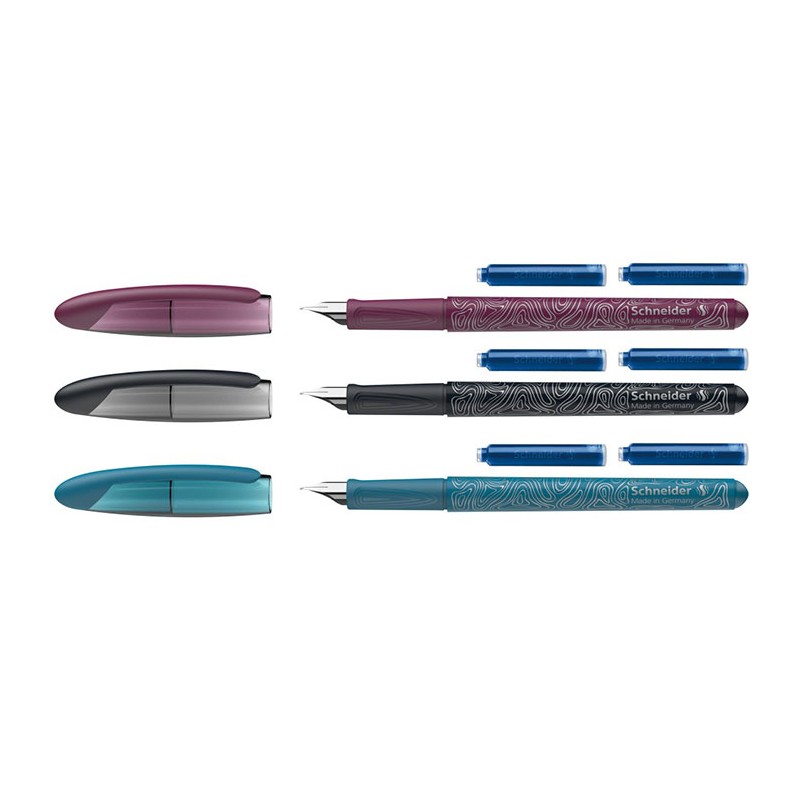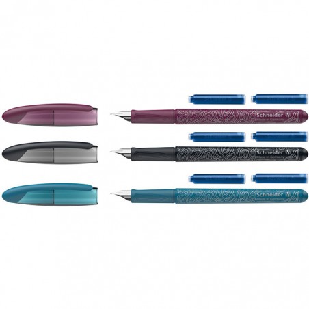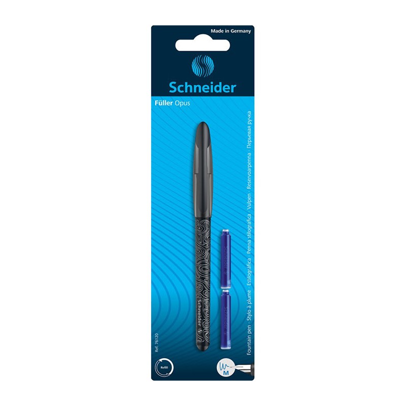 Stilou Schneider Opus, un stilou intr-un design modern si elegant, potrivit pentru elevi sau studenti. Stiloul functioneaza cu patroane de cerneala standard, ce poate fi stearsa. Stiloul este prevazut cu o zona de prindere cu manson pentru un confort sporit in timpul scrisului. Penita stiloului este realizata din otel inoxidabil. Stiloul este disponibil in trei variante de culoare: bordo, verde si negru. Stiloul este potrivit atat pentru dreptaci, cat si pentru stangaci, si se livreaza ambalat individual in blister, impreuna cu doua rezerve de cerneala.