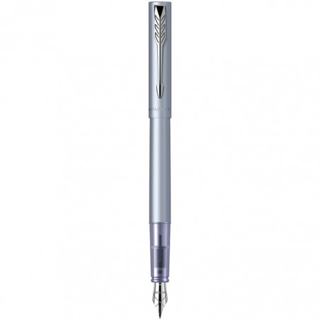 Stilou Parker Vector Royal XL Silver Blue, un stilou ce face parte din gama Vector Royal. Instrumentele de scris din gama Vector Royal sunt caracterizate prin traditionalitate, simplitatea designului, confort in utilizare, si un raport calitate-pret deosebit de avantajos. Preferatul generatie tinere, Vector, reprezinta un adevarat "invatator" al multor generatii in ale scrisului. Stiloul are corpul realizat din alama lacuit cu lac argintiu mat. Stiloul este prevazut cu un grip din ABS de culoare gri transparent. Capacul stiloului este realizat din alama lacuit cu lac argintiu mat. Capacul se inchide prin apasare. Penita stiloului este realizata din otel inoxidabil, placata cu crom, avand in varf pastila de iridiu. Stiloul functioneaza atat cu cartuse, cat si cu convertor. Accesoriile stiloului sunt realizate din otel inoxidabil placate cu crom. Stiloul este dotat cu un clips realizat din otel inoxidabil placat cu crom. Stiloul se livreaza ambalat in cutie de cadou. Se poate opta si pentru o ambalare premium, intr-un extrem de elegant etui de piele sau o cutie de cadou, pe care le poti alege din Accesorii pentru cadouri. Lungime: 157.00mm / Dimetru: 12.00mm / Greutate: 22.00g