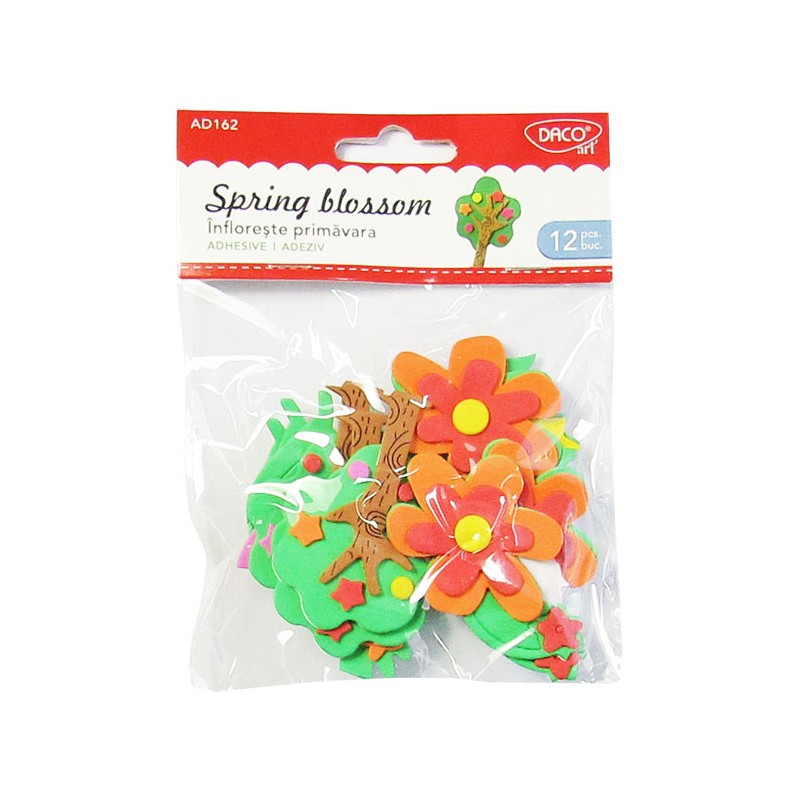 Accesorii craft – Infloreste Primavara, AD162, un pachet perfect pentru crearea unor proiecte simple sau sofisticate de decoratiune interioara, precum si pentru proiecte de lucru manual. Setul contine un numar de 12 forme din spuma 3D autoadeziva, in 4 modele diferite. Acestea vor avea cu siguranta un impact deosebit si vor da o nota interesanta oricarui proiect, sau pot fi folosite pentru a decora pagini de carti de colorat, albume sau alte suprafete.