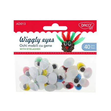 Accesorii craft – Ochi mobili colorati, AD013, un pachet perfect pentru crearea unor proiecte hazlii de decoratiuni, precum si pentru proiecte de lucru manual. Setul contine un numar de 40 de ochi mobili colorati, realizati din plastic, cu dimensiunea de 16 mm. Acestia vor avea cu siguranta un impact deosebit si vor da o nota interesanta oricarui proiect, sau pot fi folosite pentru a decora pagini de carti de colorat, albume sau alte suprafete.