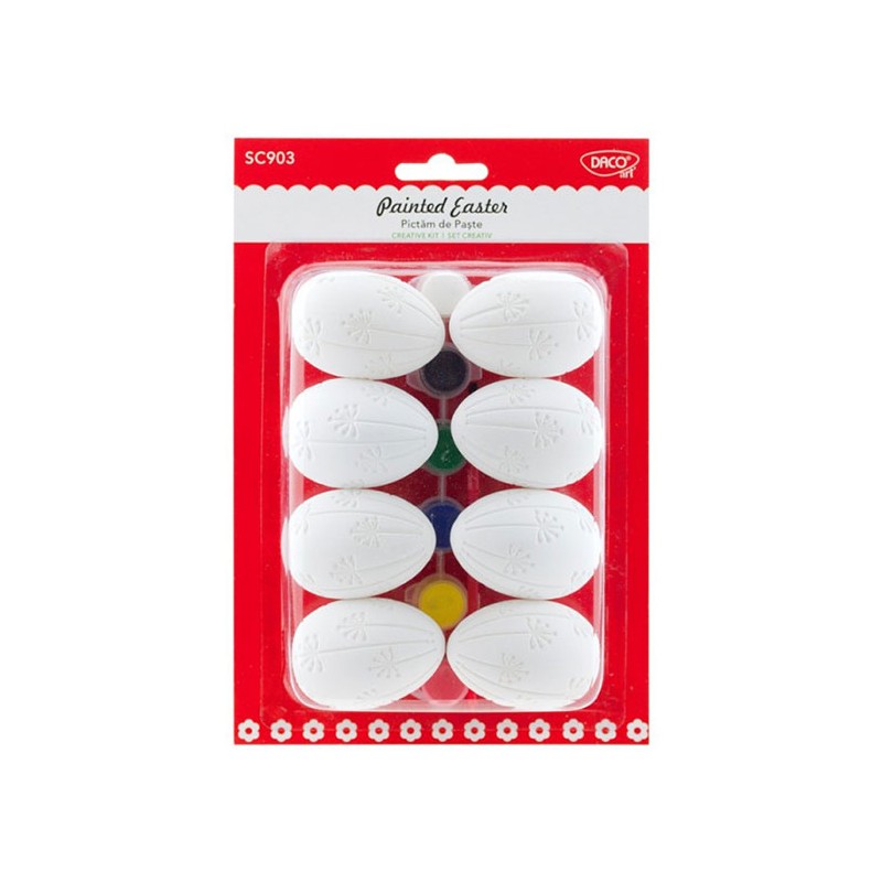 Set creativ – Pictam de Paste, SC903, un set perfect pentru a decora oua de Paste, alaturi de familie. Setul contine un numar de 8 oua realizate din plastic (cu un diamentru de 6 cm), 6 culori pentru pictura si o pensula. Acestea vor avea cu siguranta un impact deosebit si vor contribui la crearea unor momente frumoase in famile.