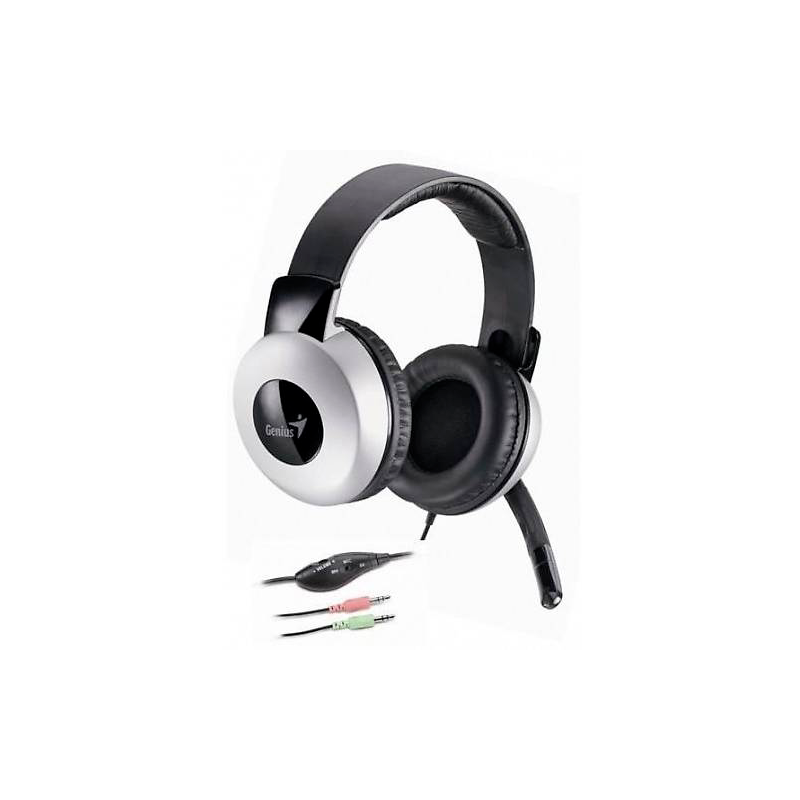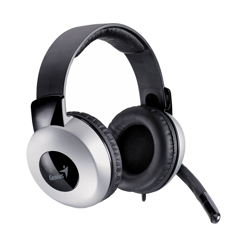 Casti stereo Genius HS-05A cu microfon, negre cu argintiu