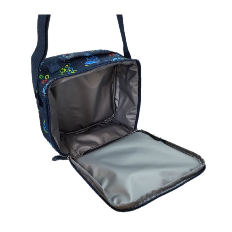 Geanta de umar cu compartiment termic pentru mancare St. Majewski, Colectia Colour Pads, o geanta din materiale de cea mai buna calitate. Datorita compartimentului izolat termic, geanta este perfecta pentru scoala si calatorii, in vederea depozitarii in siguranta si la temperaturi optime a alimentelor si bauturilor. Imprimeul este cu atat mai atragator datorita design-ului in culori placute, pe placul copiilor. Geanta este prevazuta cu maner captusit si bretele ajustabile, ceea ce ii confera un confort sporit in timpul purtarii. Geanta se inchide cu fermoar. Dimensiunile gentii sunt urmatoarele: 20x22x11 cm.