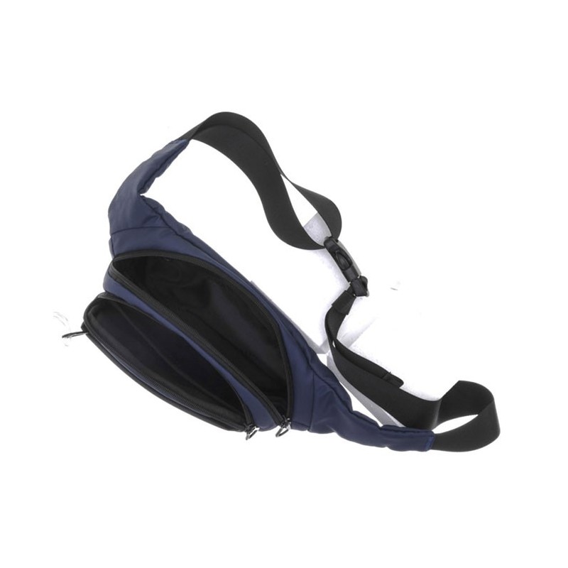 Geanta tip borseta, modelul 256.040, face parte din colectia Escape a companiei belgiene Davidts. Davidts are o bogata traditie in crearea si manufacturarea bagajelor si altor accesorii pentru calatorii. Bazele sale au fost puse la inceputul secolului 18, iar de la fondarea companiei, in 1949, Davidts se mentine printre cei mai inovativi producatori de bagaje din lume. Aceasta geanta tip borseta este realizata din material textil (poliester) de culoare albastra, respectand standardele inalte ale Davidts. Geanta este buretata, pentru a oferi un plus de confort, precum si pentru o mai buna protectie a obiectelor depozitate in ea. Geanta este prevazuta cu 2 compartimente incapatoare, ce se inchid cu fermoar, precum si cu un buzunar frontal, ce se inchide tot cu fermoar. Buzunarul frontal este decorat cu logo-ul Davidts, embosat pe o placuta metalica. Compartimentele sunt dotate cu multiple buzunare interioare. Geanta este prevazuta cu o curea realizata din material textil, durabil, de culoare neagra. Cureaua este reglabila si se inchide cu catarama robusta, realizata din poliamida de inalta calitate. Dimensiunile gentii sunt urmatoarele: 28 x 16 x 7 cm.