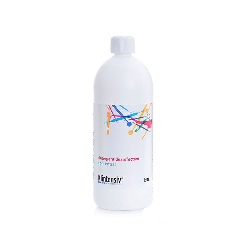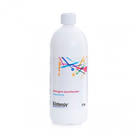 Detergentul dezinfectant concentrat Klintensiv este un dezinfectant concentrat, ce contine saruri cuatemare de amoniu si biguanida. Detergentul prezinta proprietati detergente si dezinfectante cu spectru larg de actiune biocida. Formula eficienta pentru curatarea si dezinfectarea diferitelor tipuri de suprafete dure si intrumente sau dispozitive medicale. Recipientul cu produs dezinfectant concentrat este agitat energic, inaintea dozarii cantitatii necesare de produs pentru a prepara solutia gata de lucru. Produsul este ambalat in recipient de 1 litru.