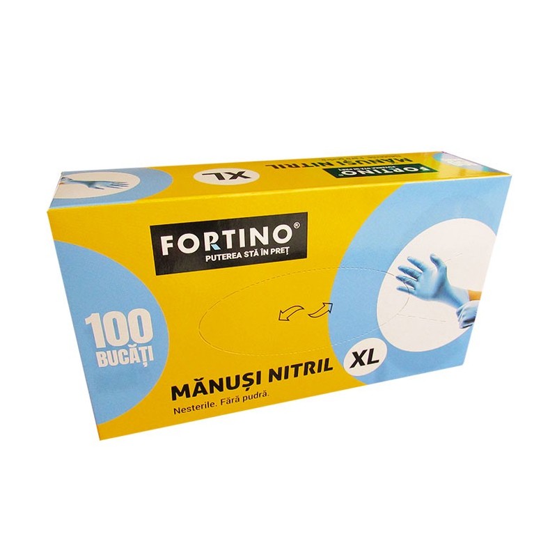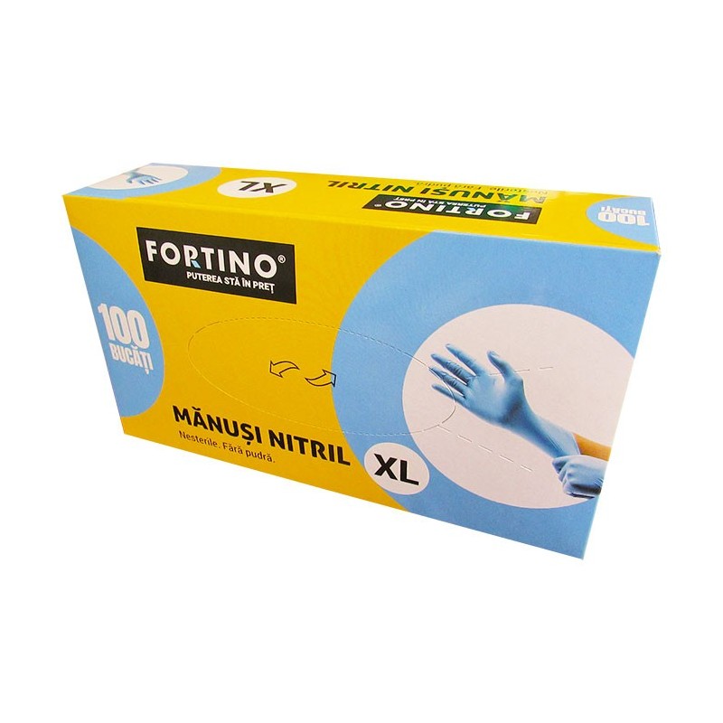 Manusi nitril marimea XL, nepudrate, albastre, 100 bucati/cutie, Fortino